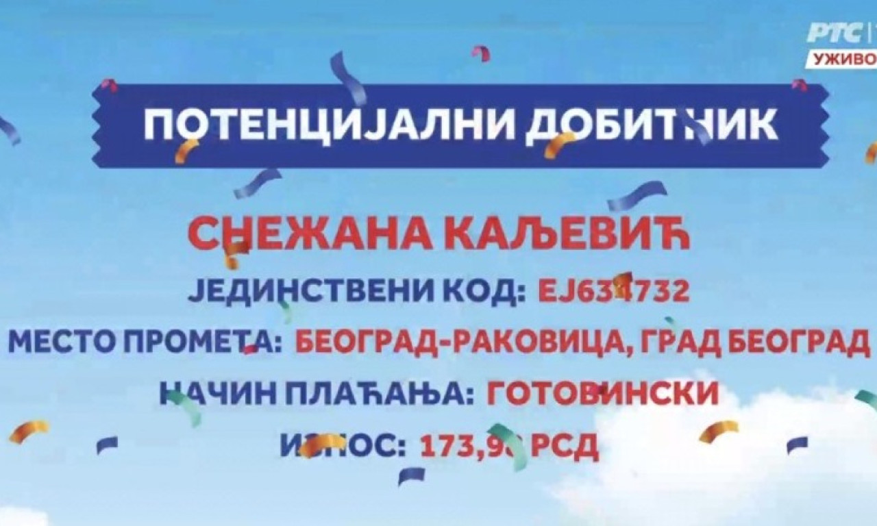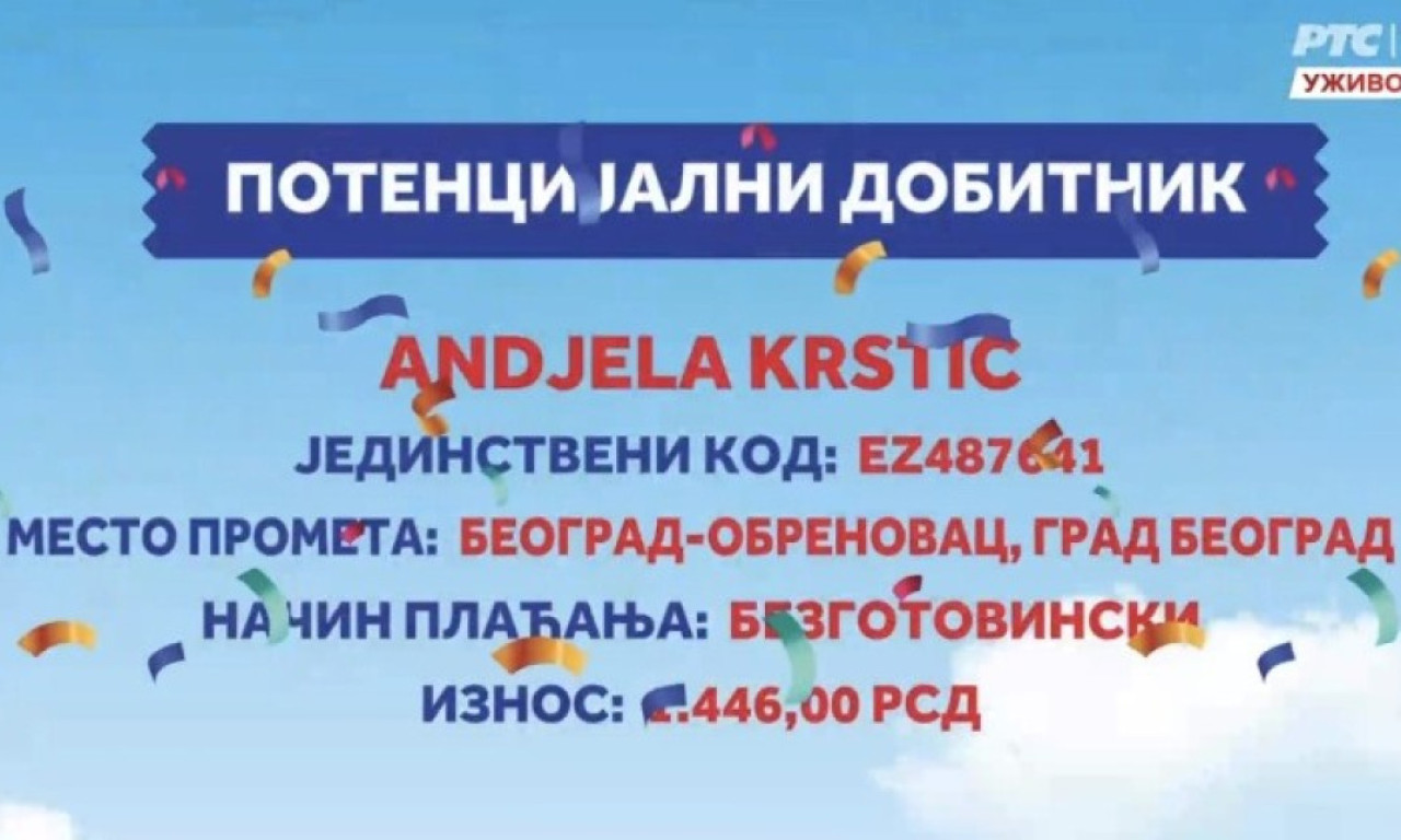Pored automobila, u ovom izvlačenju dodeljen je i trosoban stan površine 91,55 kvadratnih metara u naselju Zemunske kapije koji je dobila Anđela Krstić iz Obrenovca za račun od 1.446 dinara. Ova atraktivna nekretnina u jednom od najtraženijih delova glavnog grada predstavlja životnu priliku za svog dobitnika.