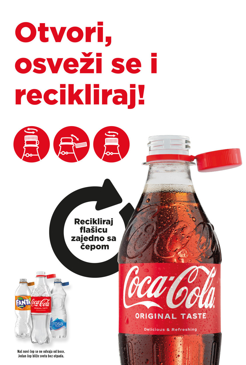 - Novo rešenje čepova je u potpunosti higijensko, praktično i funkcionalno, a ispoštovani su i bezbednosni standardi očuvanja kvaliteta i ukusa napitaka. Uvođenje ovog praktičnog i funkcionalnog rešenja predstavlja još jedan korak u okviru globalne strategije održivog razvoja kompanije, pod nazivom "Svet bez otpada"; čiji je cilj da Coca - Cola do 2030. godine dostigne prikupljanje 100 odsto PET i aluminijumske ambalaže koja se proda na tržištu, kao i da 50 odsto ambalaže bude napravljeno od recikliranih materijala - kažu u ovoj kompaniji.