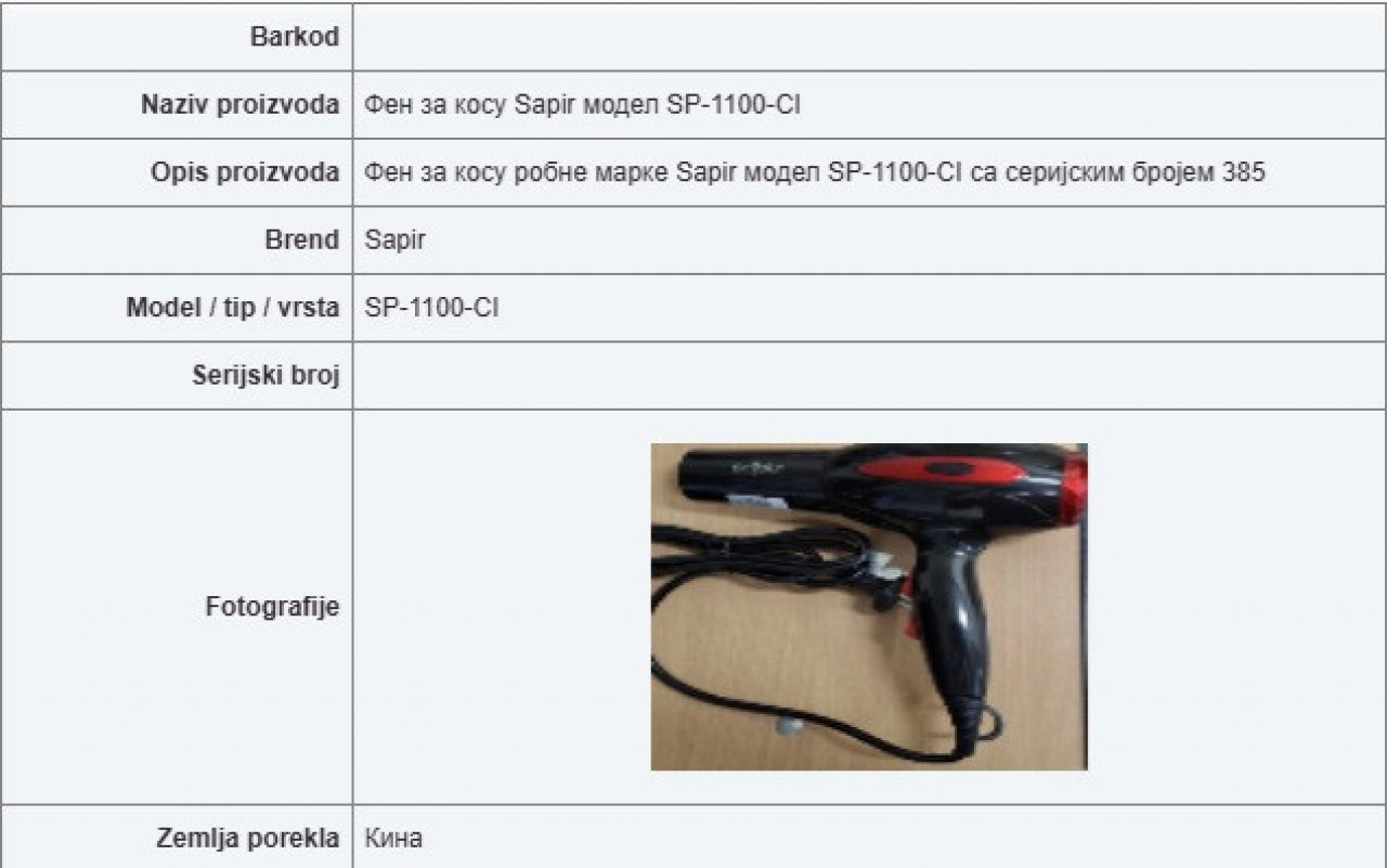 Sa tržišta Srbije hitno se povlače dva fena za kosu od različitih proizvođača. Na sajtu NEPRO objavljeno je da postoji rizik od požara i rizik od električnog udara. Radi se o fenu marke Sapir, a drugi fen je Babyliss model.