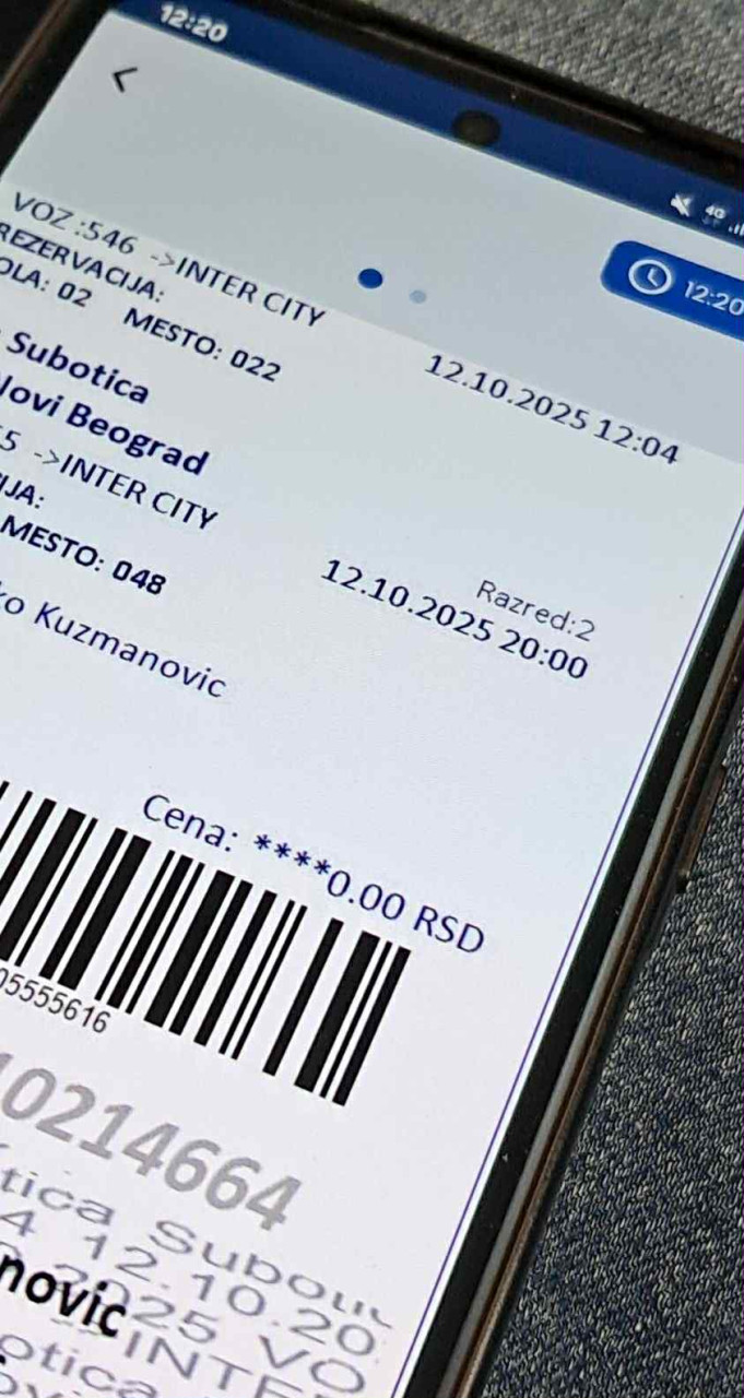 Na ekranu mobilnog telefona jasno piše: Inter City 546, polazak 12:04, mesto 048. Tik iza kafe aparata u odvojenom delu vagona, kondukter proverava karte. Putnici nasmejani, mnogi prvi put u vozu koji kroz Srbiju vozi brzinom do 200 kilometara na sat.