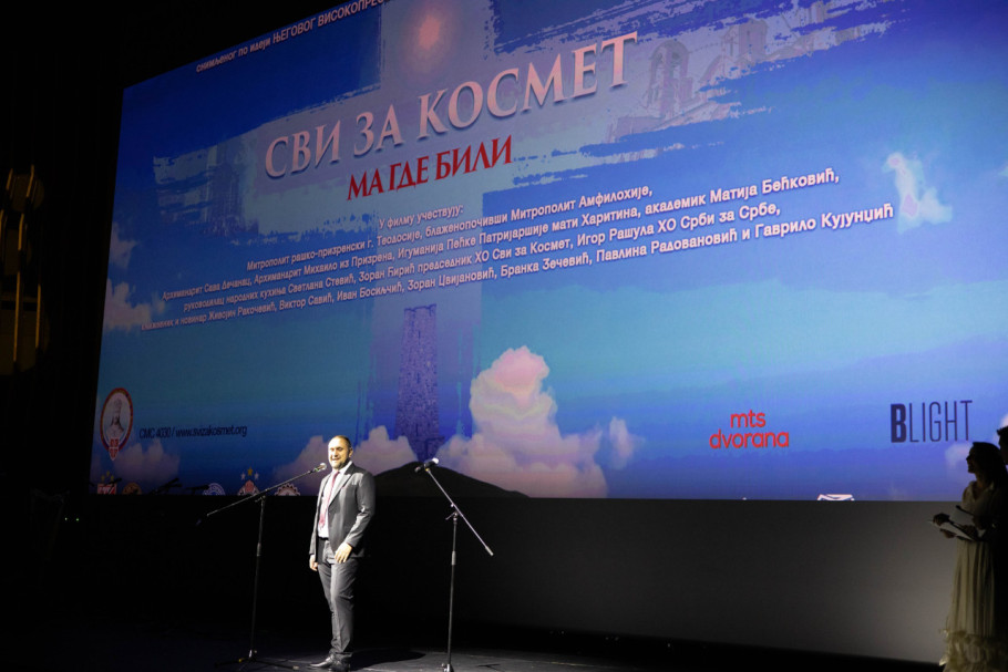 Sinoć je u prepunoj sali Mts dvorane u Beogradu održana premijera dokumentarnog filma "Svi za Kosmet, ma gde bili".