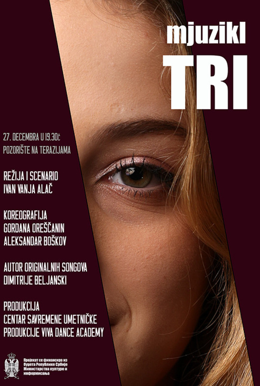 Plesna predstava u 11 činova inspirisana je istinitim događajima. Režiju i scenario potpisuje sada već uspešan i nagrađivan reditelji Ivan Vanja Alač. Predstava traje ukupno 55min. U Mjuziklu "TRI" gledaoce očekuje pravo uživanje, jer će uz prelepe kostime i atraktivne koreografije imati prilike da na sceni vide više od 50 mladih plesača Viva Dance Academy (Novi Sad) i Megablast (Hrvatska), ali i njihove specijne goste plesače i pevače.