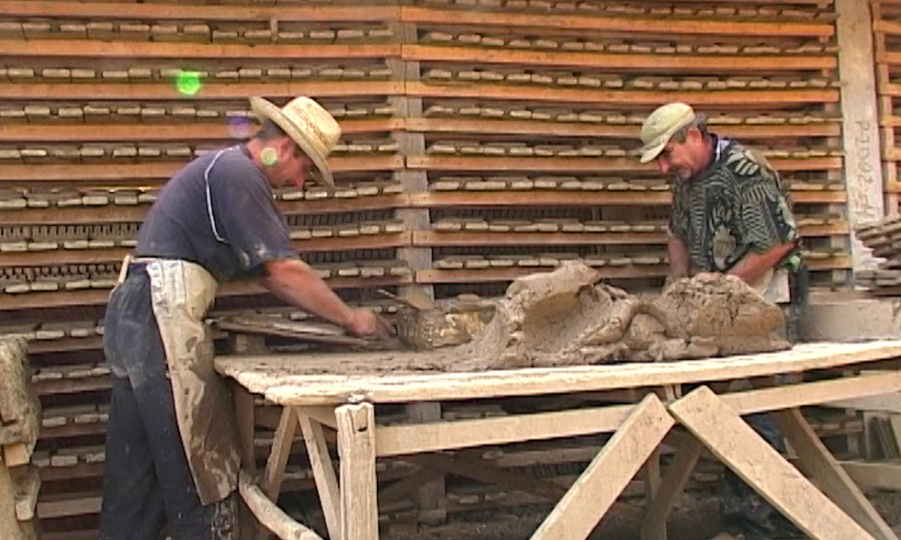 Dok jedan seče i poravnava masu blata, drugi priprema kalupe. Njihove kecelje su natopljene ilovačom, a pokreti uigrani, kao da ponavljaju isti ritual stotinama puta dnevno. Tako je i bilo. I više od toga. Nakon vađenja iz kalupa, cigla i crep su se sušili u posebnim drvenim zgradama sa dobrim provetravanjem, a zatim pekli u furunama.
