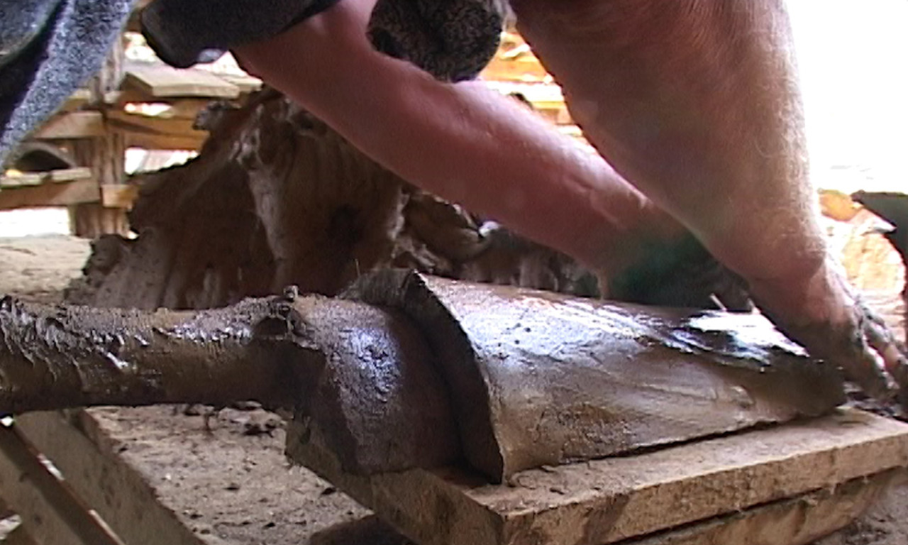 Dok stoji za drvenim stolom, ne napušta ga sećanje kako rukama oblikuje vlažnu ilovaču. Iza njega, u pravilnim redovima, na drvenim policama sušilo se na stotine tek oblikovanih crepova. Prostor je mirisao na zemlju i vlagu, a svetlost se probijala kroz daske krova.