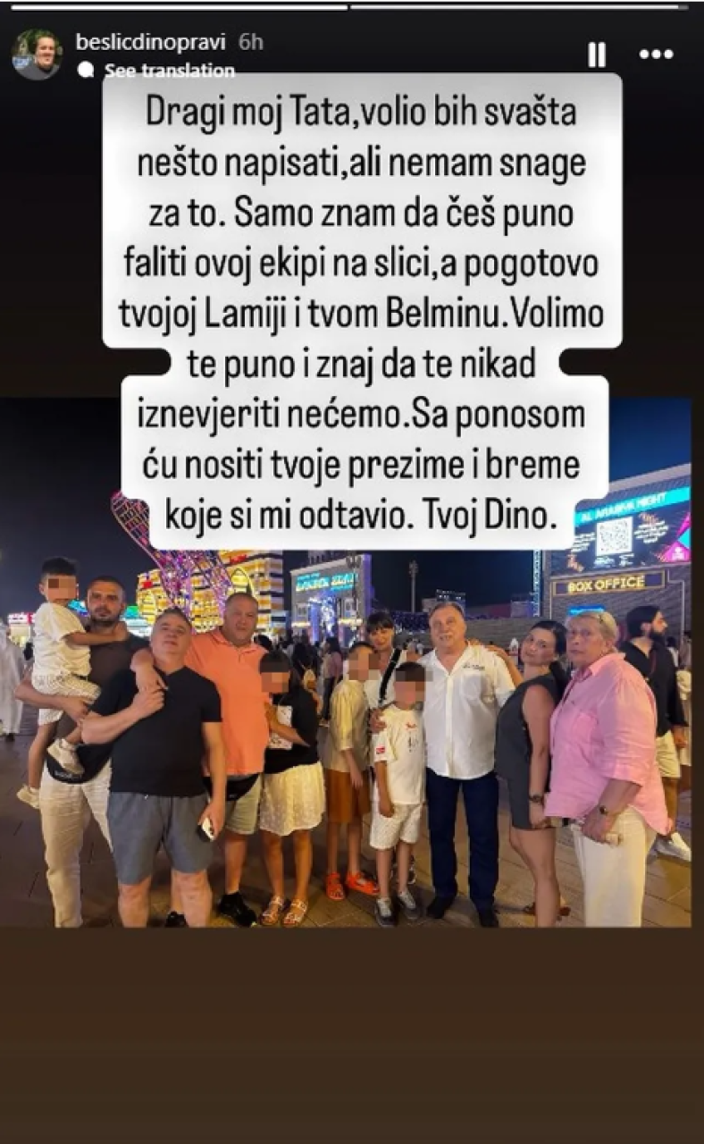 - Dragi moj tata, voleo bih svašta nešto napisati, ali nemam snage za to. Samo znam da ćeš puno faliti ovoj ekipi na slici, a pogotovu tvojoj Lamiji i tvom Belminu - napisao je i dodao:
