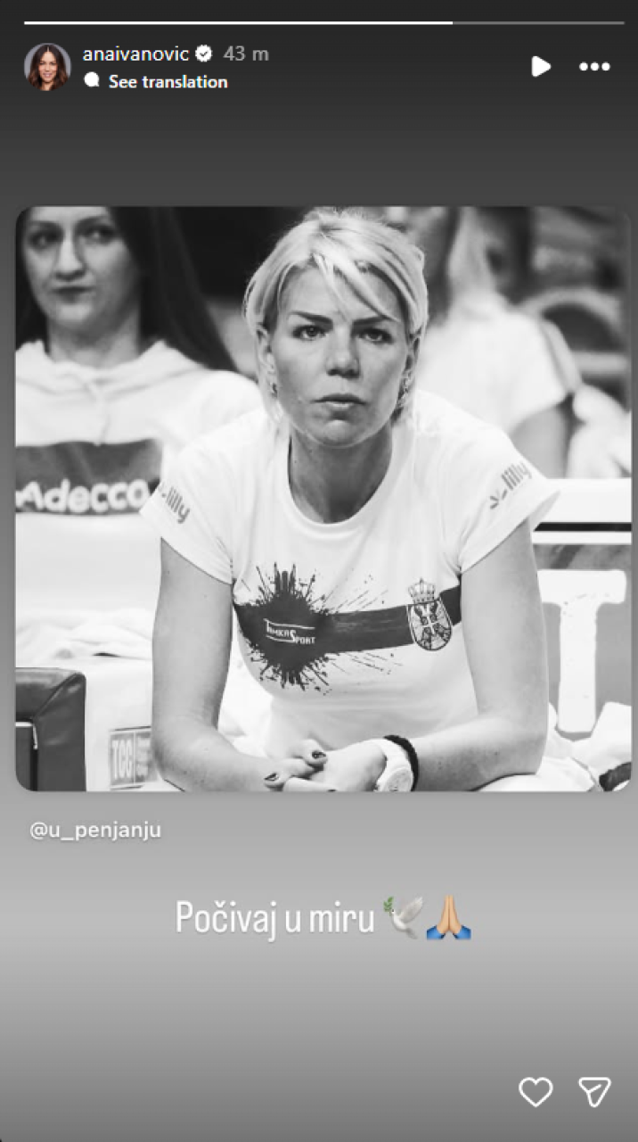 Nekadašnja najbolja teniserka sveta, Ana Ivanović, oglasila se putem društvenih mreža kako bi uputila poslednji pozdrav svojoj koleginici i nekadašnjoj selektorki Fed kup reprezentacije Srbije, Tatjani Ječmenici Jevtić.