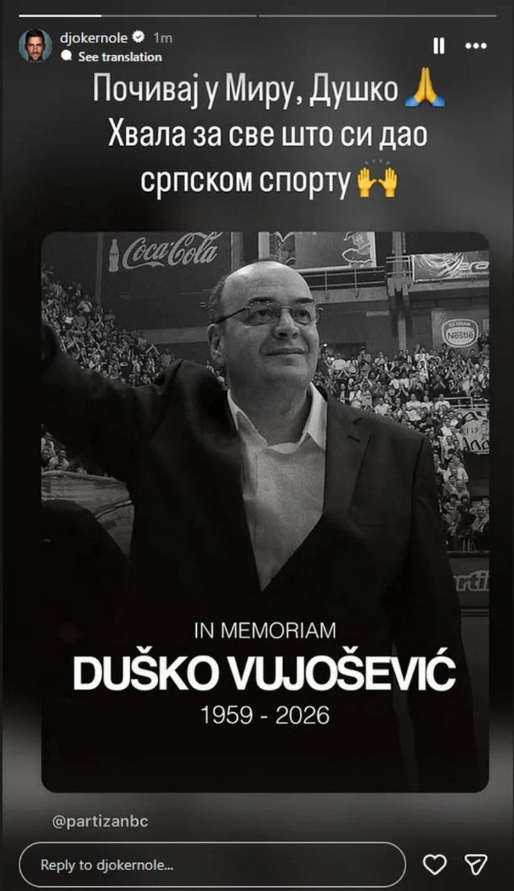 - Počivaj u miru, Duško. Hvala za sve što si dao srpskom sportu - kratko je napisao Novak Đoković uz njegovu sliku.