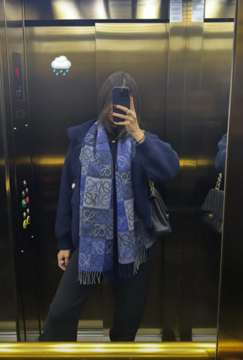 Na fotografiji koju je objavila na svom Instagram nalogu možemo je videti u jednom jednostavnom zimskom stalingu koji je ukrasila luksuznim šalom. Reč je plavom "Loewe" šalu od vune i kašmira koji košta oko 550 evra.