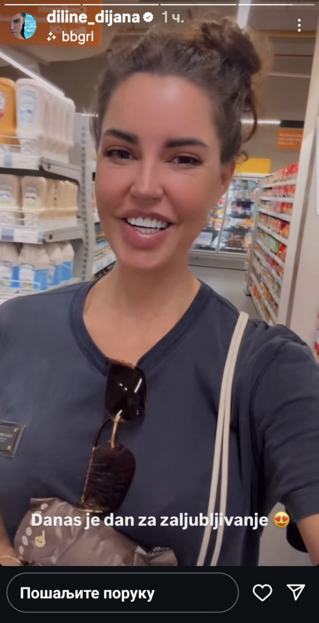 – Ne, ne, ovo nije realno! Evo opet, opet ista situacija, a ja ovako izgledam, nemam ni korpu, o frizuri da ne pričam. Danas je neki dan u atmosferi čudan – rekla je Dijana, a na snimku je dodala natpis: „Danas je dan za zaljubljivanje“.