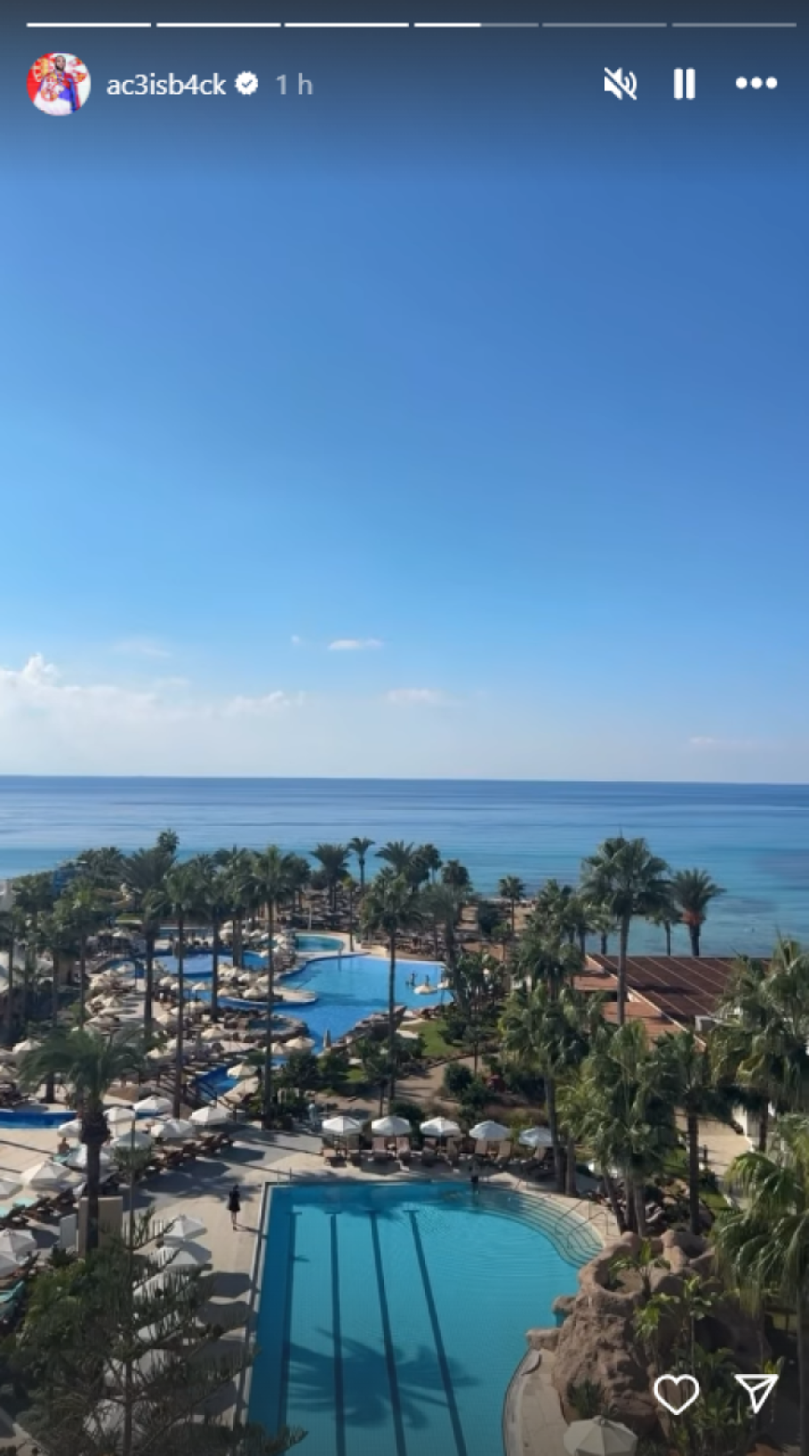Sin pevačice Svetlane Cece Ražnatović najpre je objavio fotografiju iz automobila, uz koju je obeležio lokaciju, a potom i snimak iz hotelske sobe. Pokazao je pogled sa terase koji se pruža na more i brojne bazene luksuznog hotelskog kompleksa u kojem je odseo.