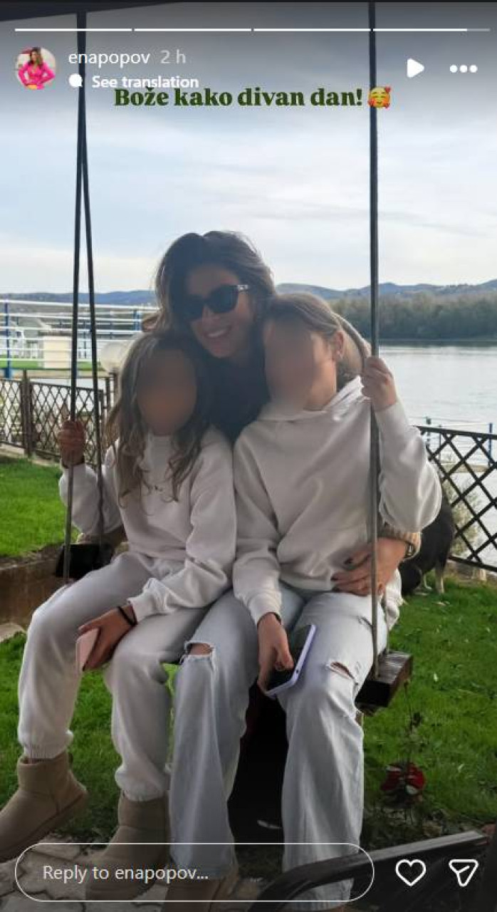Ena Popov je svoje dve mezimice povela u šetnju pored reke, gde su devojčice uživale na ljuljašci, dok ih je ponosna mama nežno grlila. Na licima sve tri bio je osmeh od uva do uva, a atmosfera prštala od ljubavi i topline.
