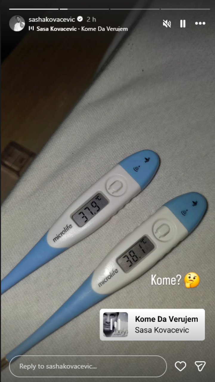 Nakon infuzije, Kovačević je uslikao i dva toplomera, signalizirajući da mu je skočila temperatura: