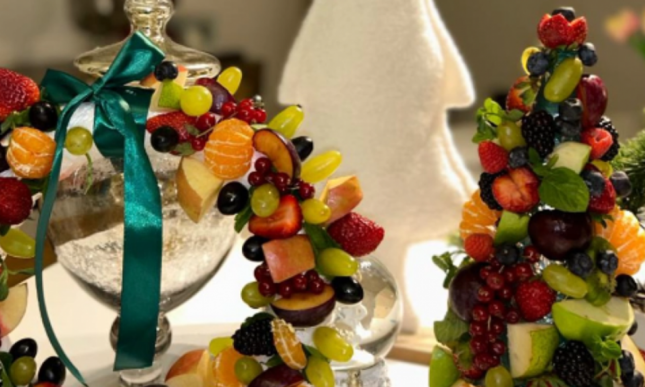 Pokazala je venac i jelku izrađene od jagoda, mandarina, grožđa, jabuka i ribizli, uz šaljivu opasku da se nada da će ukućani izdržati da ih ne pojedu pre praznika.