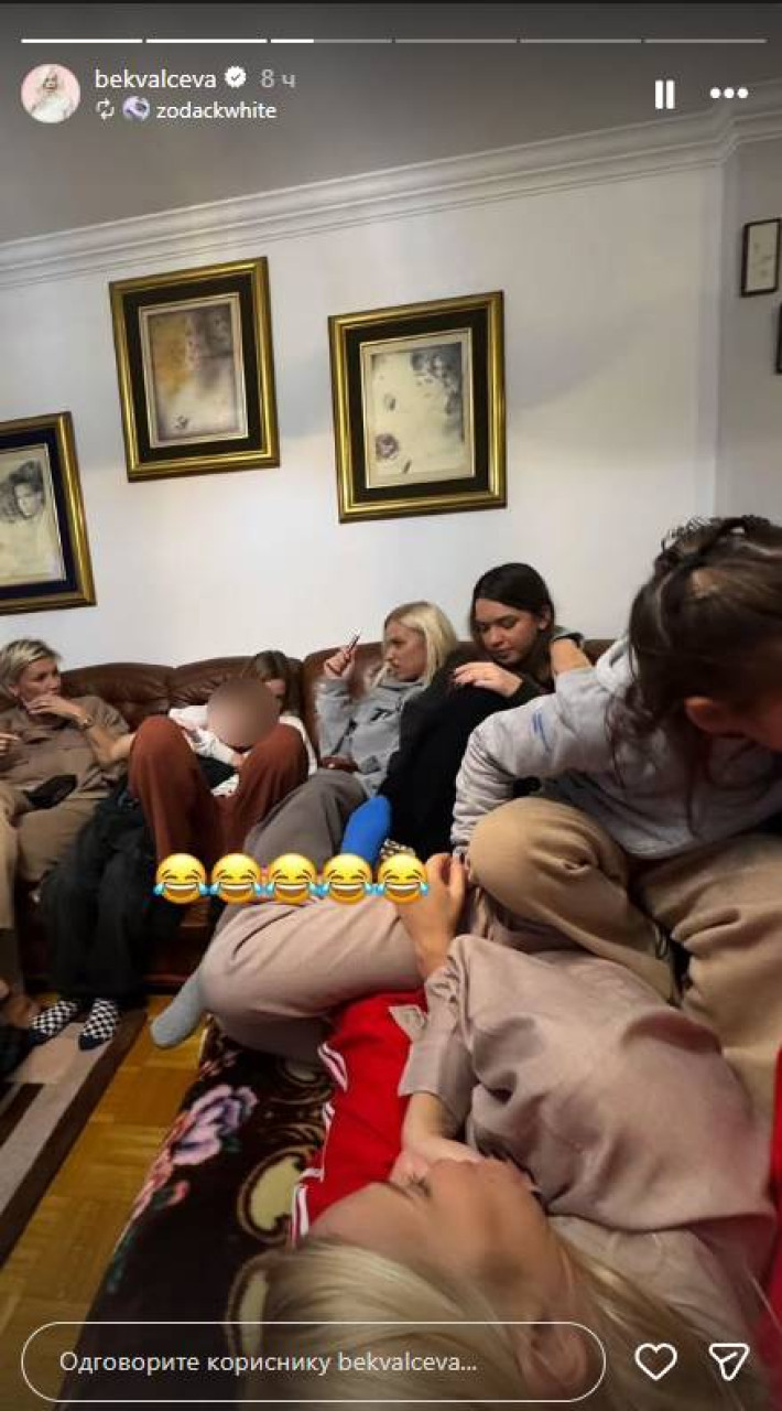 Na fotografiji, koju je Nataša podelila na Instagramu uz emotikone smeha, vidi se kako cela porodica uživa u porodičnom domu, ležeći jedni pored drugih, pa čak i jedni preko drugih.