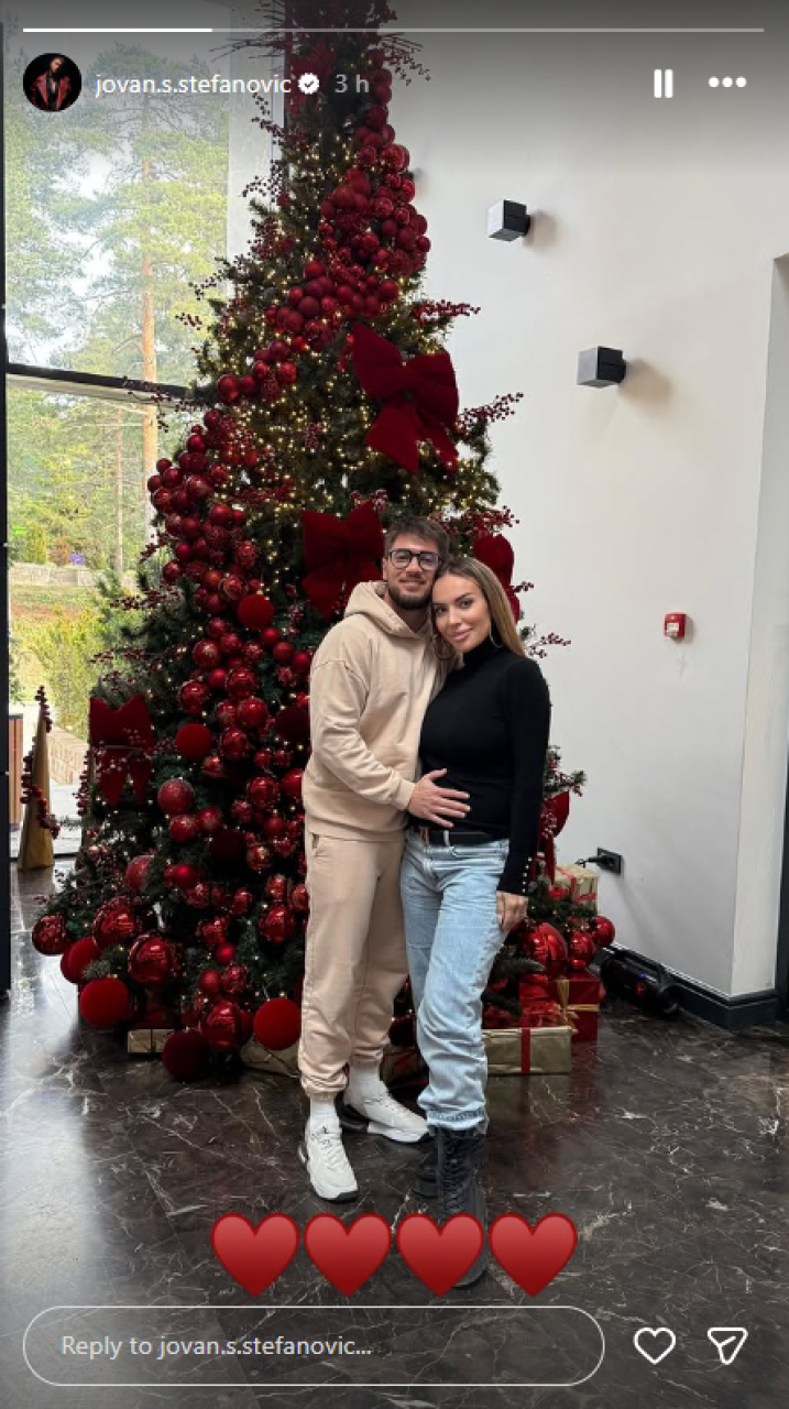 Pevački par Jovan Stefanović i Iva Bojanović podelio je prelepe vesti sa svojim pratiocima: očekuju prvo zajedničko dete! Srećnu objavu Stefanović je podelio na svom Instagram profilu, uz fotografiju ispred jelke na kojoj nežno drži ruku na partnerkinom stomaku.