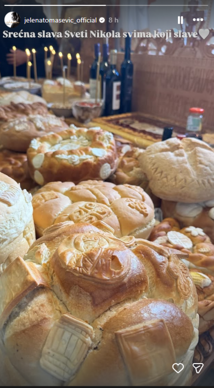 Pevačica Jelena Tomašević pohvalila se na Instagramu svojim kulinarskim umećem. Objavila je fotografiju slavskog kolača koji je sama napravila, dok njen suprug, glumac Ivan Bosiljčić, važi za jednog od najboljih domaćina na estradi kod koga prijatelji obožavaju da dolaze.