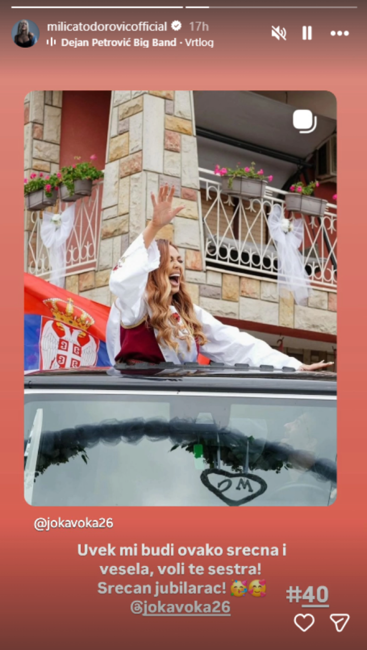 U domu trudne pevačice Milice Todorović danas je poseban dan. Njena starija sestra Jovana proslavlja jubilarni 40. rođendan, a emotivne čestitke najbližih preplavile su društvene mreže.