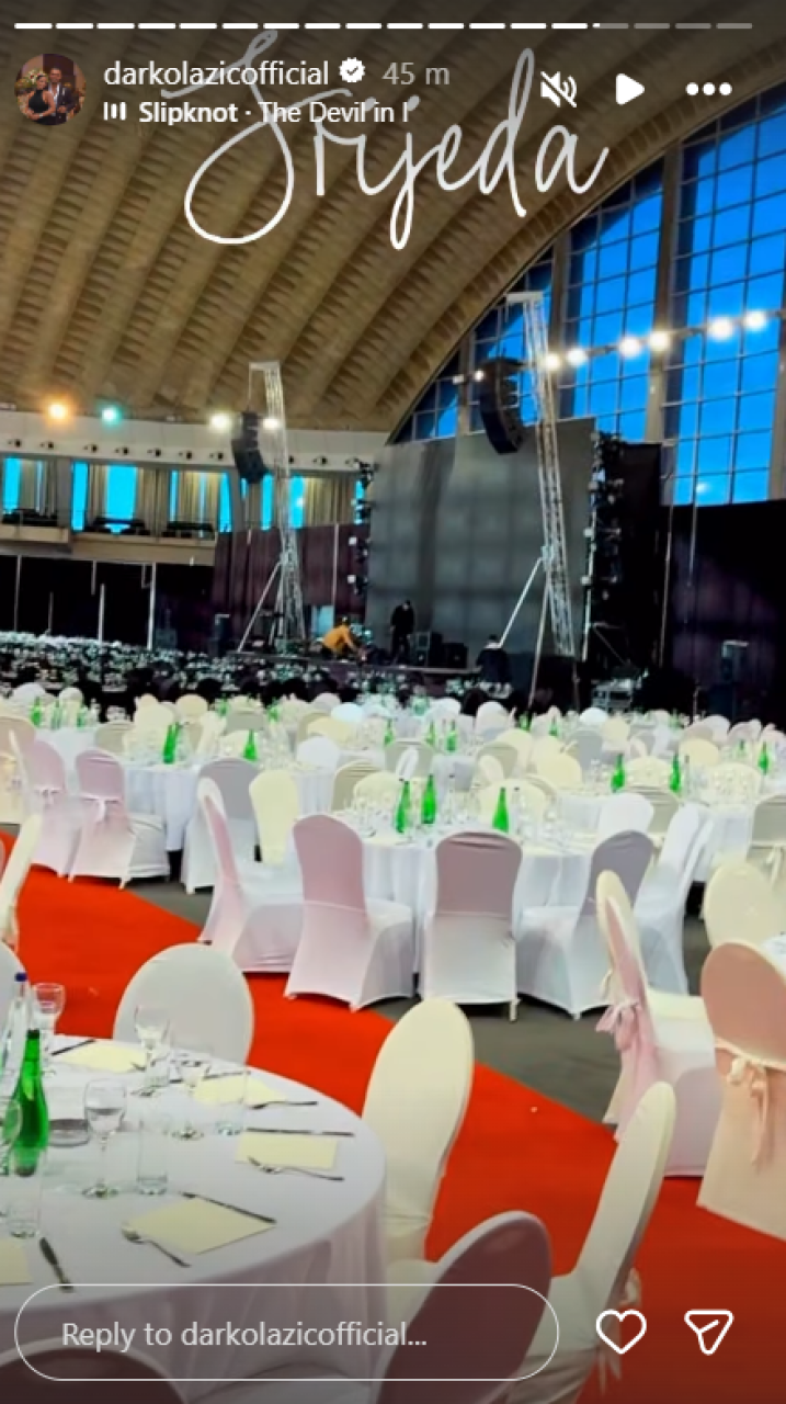 Čim je stigao na beogradski Sajam, Lazić je fanovima pokazao gde će večeras biti "luda žurka". Hala je potpuno transformisana i spremna za najluđu noć – pod je prekriven dugačkim crvenim tepihom, a svečano postavljeni stolovi popunili su ogroman prostor.