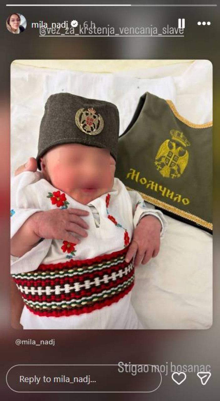 Mila Nađ objavila je fotografiju sina kojem je dala ime Momčilo, a dečak je u porodilištu uslikan sa šajkačom na glavi.
