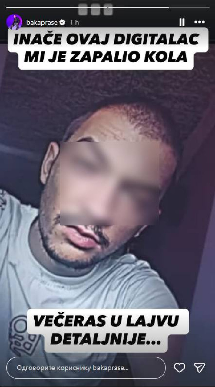 Baka Prase je na svom storiju podelio fotografiju nepoznatog mlađeg muškarca uz kratak, ali direktan opis: „Inače ovaj digitalac mi je zapalio kola“.