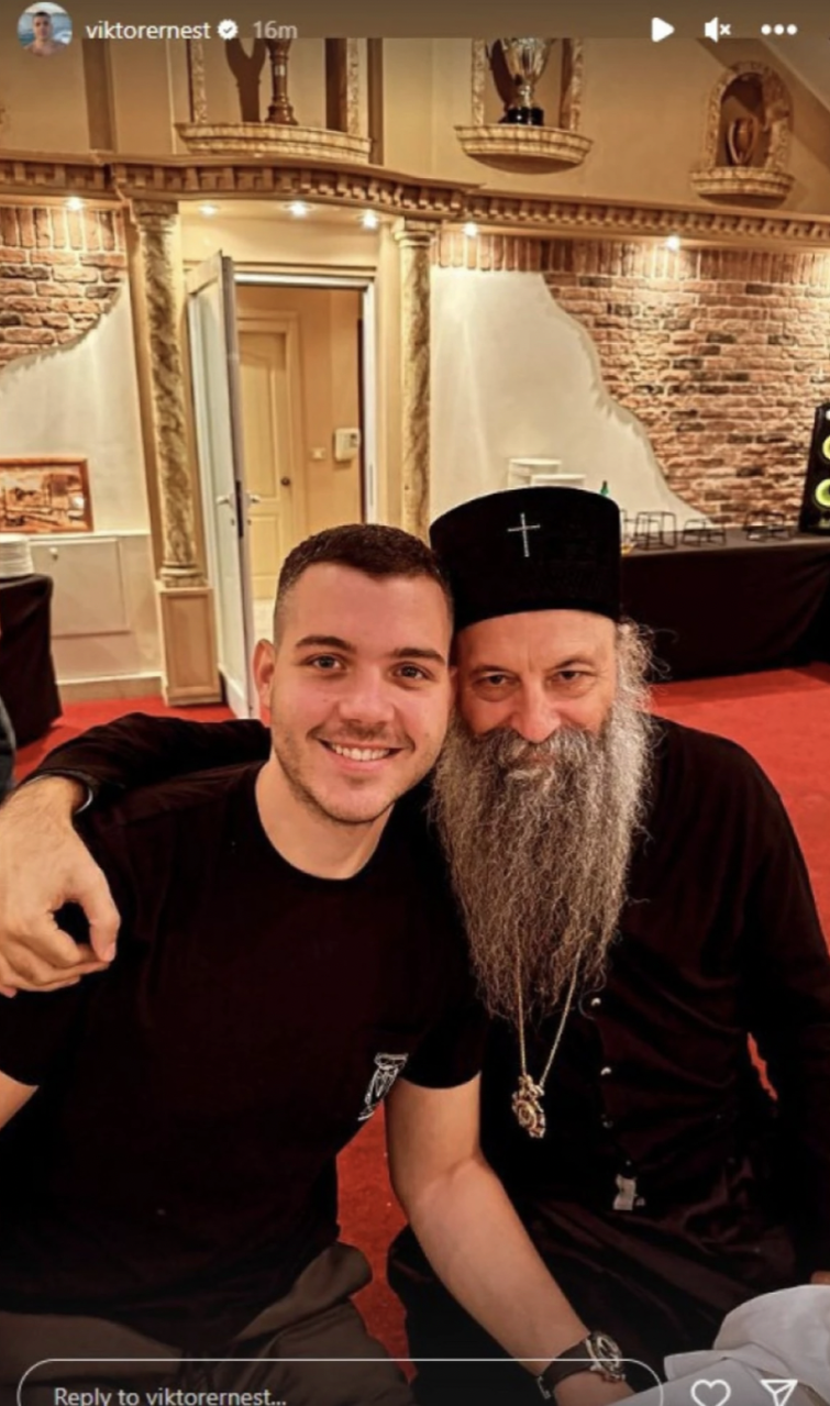 CelebrityNaime, Brenin sin je na svom Instagramu objavio da je sve spremno za slavu. Viktor je objavio nekoliko fotografija, među kojima se izdvojila ona sa njihovim gostom - patrijarhom Porfirijem.