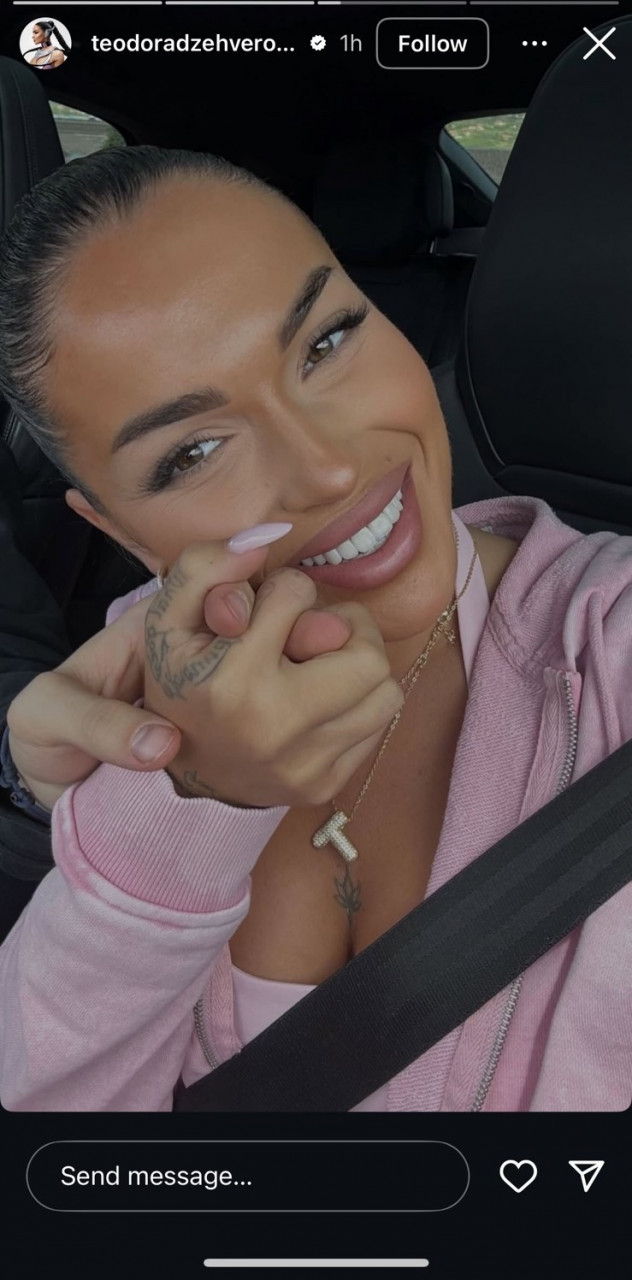 Ovo je prvi put da Teodora javno pokazuje novog dečka. Na Instagram priči se vidi da je pevačica mušku ruku prislonila na svoj obraz, a potom mu je posvetila pesmu "Prava ljubav" dok su se zajedno vozili kolima.