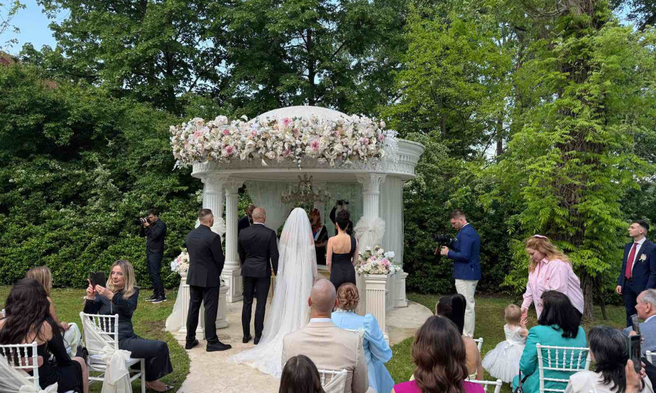 Slika je objavljena na Instagram stranici luksuznog mesta gde se održala ceremonija, a na njoj Tea zrači u raskošnoj beloj venčanici ukrašenoj kristalima, sa osmehom koji govori više od reči. U ruci drži bidermajer, dok pored nje stoji njen izabranik Ivan, u klasičnom crnom smokingu sa leptir mašnom. Sa druge strane, matičarka u elegantnoj crnoj kombinaciji zaokružuje kadar koji odiše ljubavlju i elegancijom.