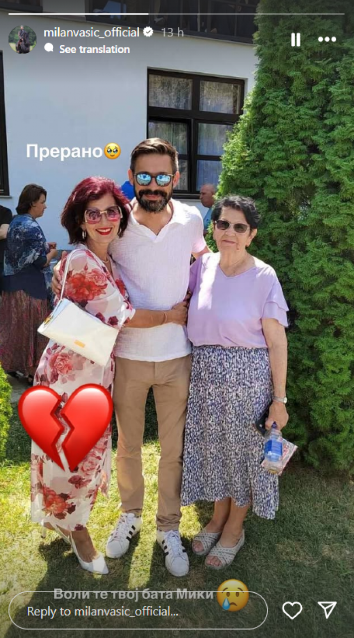 Uz emotivnu sliku, Vasić je dodao uplakani emotikon i slomljeno srce, a poruka koju je napisao glasila je: