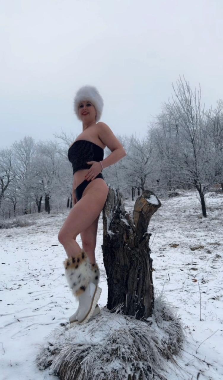 Naime, Maja nije marila za hladnoću, već se skinula i izašla napolje kako bi napravila fotografije koje su odmah privukle pažnju na društvenim mrežama. Na glavi je nosila šubaru, a obula je čizme sa krznom.