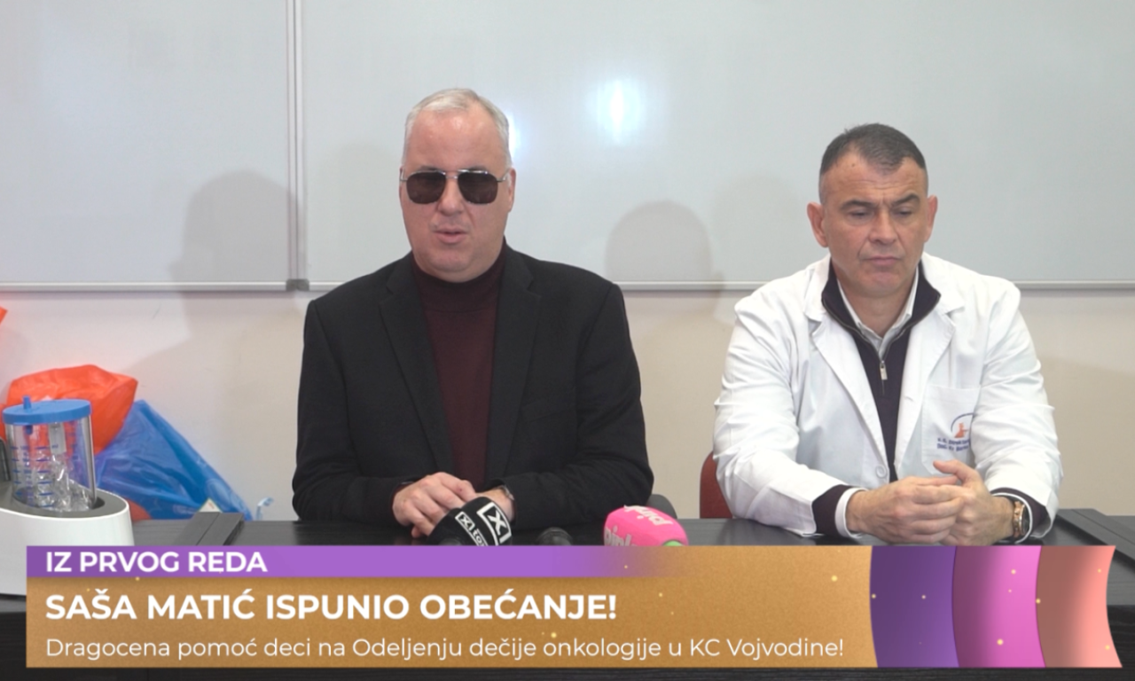Muzička zvezda Saša Matić donirao je paketiće i medicinsku opremu Dečijoj bolnici u Novom Sadu u vrednosti od 10.000 evra. Tom prilikom obratio se okupljenim medijskim ekipama.