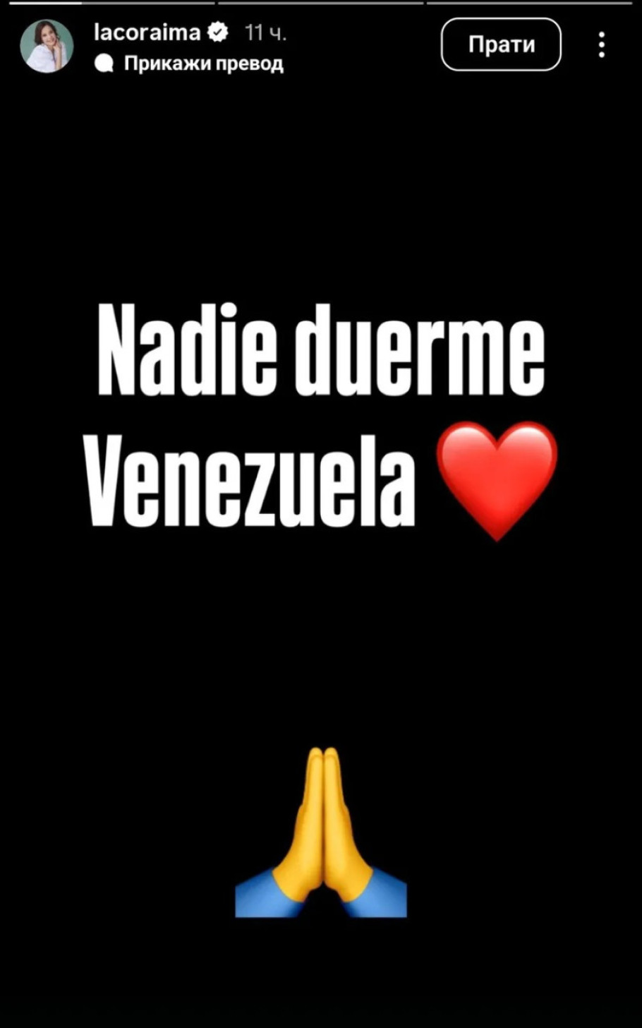 - Niko ne spava, Venecuela - napisala je Toresova.