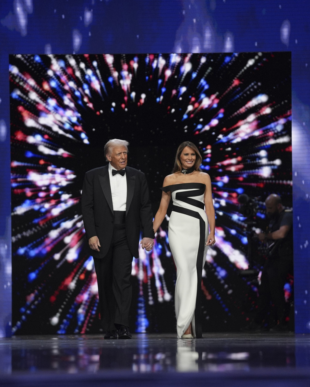 Bivša pa nova prva dama Amerike, Melanija Tramp, zablistala je na inauguracionom balu u elegantnoj beloj haljini sa crnim detaljima, koju je dizajnirao renomirani kreator Herve Pierre. Njena sofisticirana modna kombinacija privukla je pažnju javnosti i medija, dok je njen stil ponovo potvrđen kao sinonim za eleganciju i besprekornu estetiku.