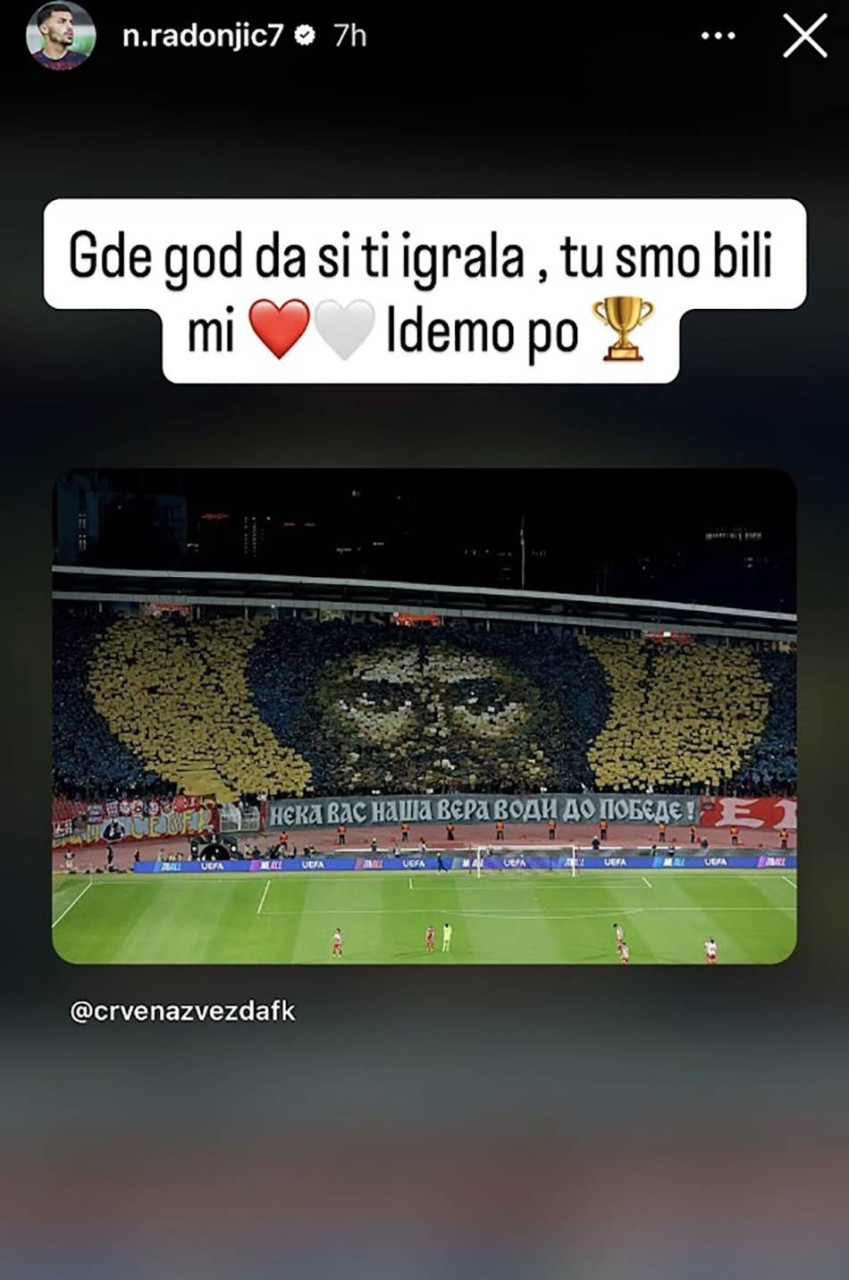Oglasio se i Radonjić posle eliminacije crveno-belih iz Evrope i na svom Instagram profilu napisao je jasnu poruku: - Gde god da si ti igrala, tu smo bili mi.
