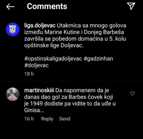 Time OutRezultat je, izgleda, bio očekivan, niko se na internetu nije žalio da je bilo problema - iz Donjeg Barbeša su se i zahvalili domaćinima na posluženju i gostoprimstvu, istakavši da je utakmica protekla u fer-pleju. Iz Opštinske lige Doljevac su kratkim saopštenjem na društvenim mrežama konstatovali da je meč odigran i da je domaćin pobedio i - reklo bi se - to je to.