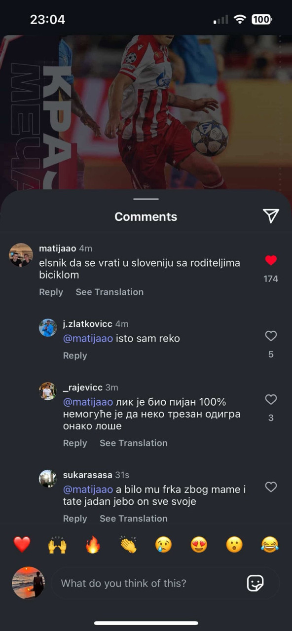 Na Instagram fan stranici crveno-belih ubrzo se razvila prava komedija u komentarima, gde su Delije kroz šalu iskazale nezadovoljstvo njegovom igrom.