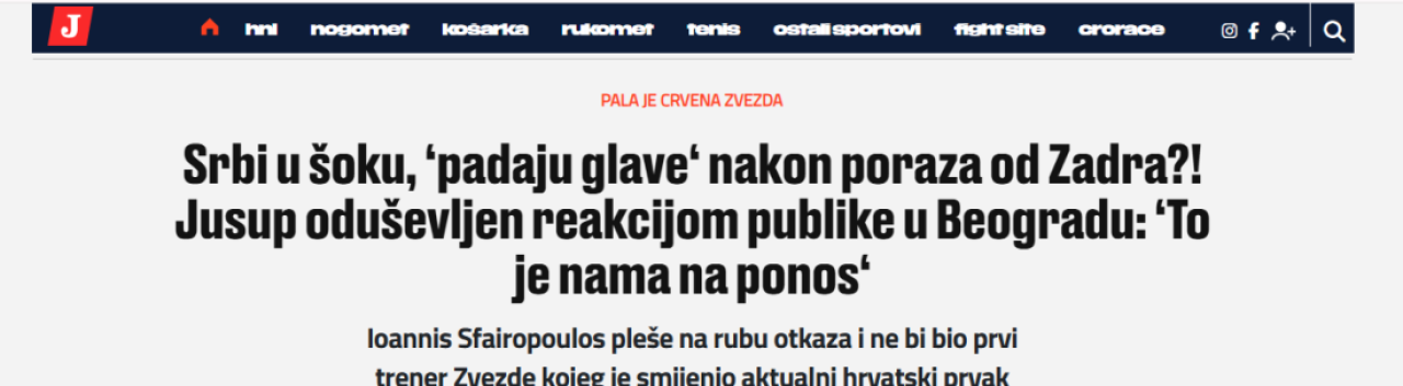 Portal "Jutarnji.hr" posle debakla Zvezde piše: "Srbi u šoku, padaju glave nakon poraza od Zadra?!