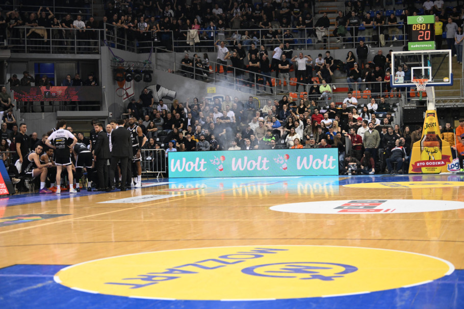 Mega je u trenutku prekida vodila rezultatom 61:47. Sudije su prvo upozorile navijače Partizana koji su vređali porodicu predsednika KSS Nebojše Čovića.