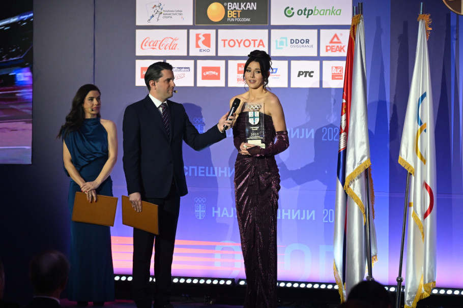 Atletičarka Angelina Topić i rvač Aleksandar Komarov proglašeni su sinoć za najuspešnije sportiste Srbije za 2025. godinu u izboru Olimpijskog komiteta Srbije.