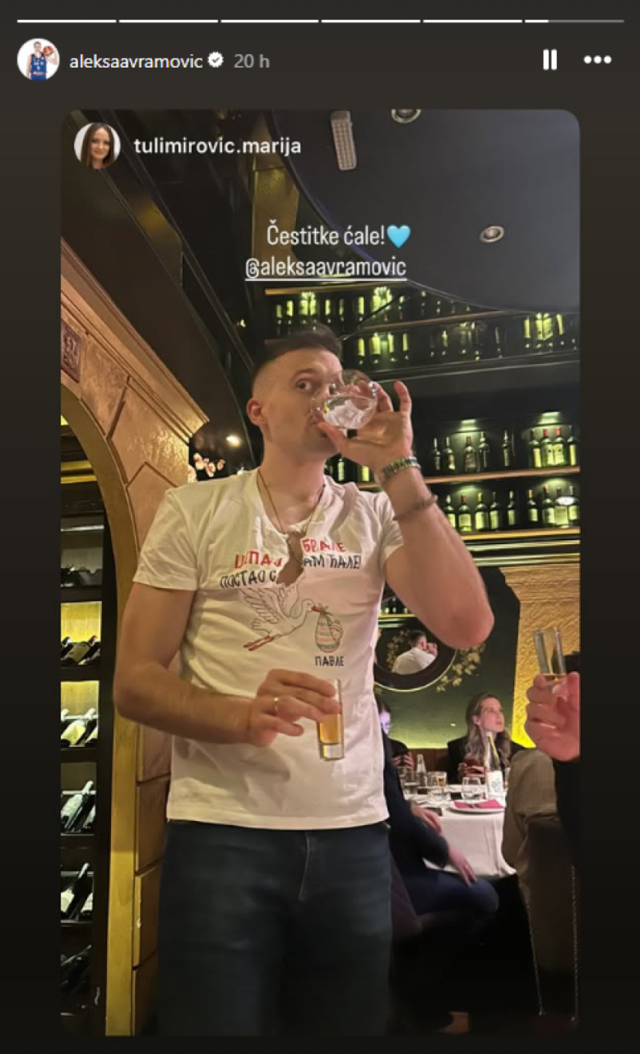 Rođenje prvenca Aleksa Avramović proslavio je u jednom restoranu u društvu porodice i prijatelja. Aleksa je bio među najveselijima, a kako je to izgledalo možete videti u kadrovima ispod.