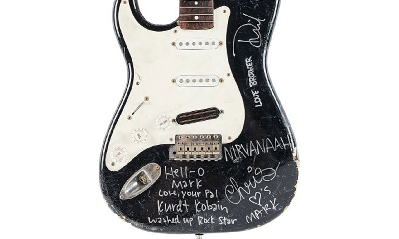 Muzičar je crni Fender Stratocaster polomio na sceni, a na njoj se nalaze potpisi Kobejna, basiste Krista Novoselića i bubnjara Dejva Grola