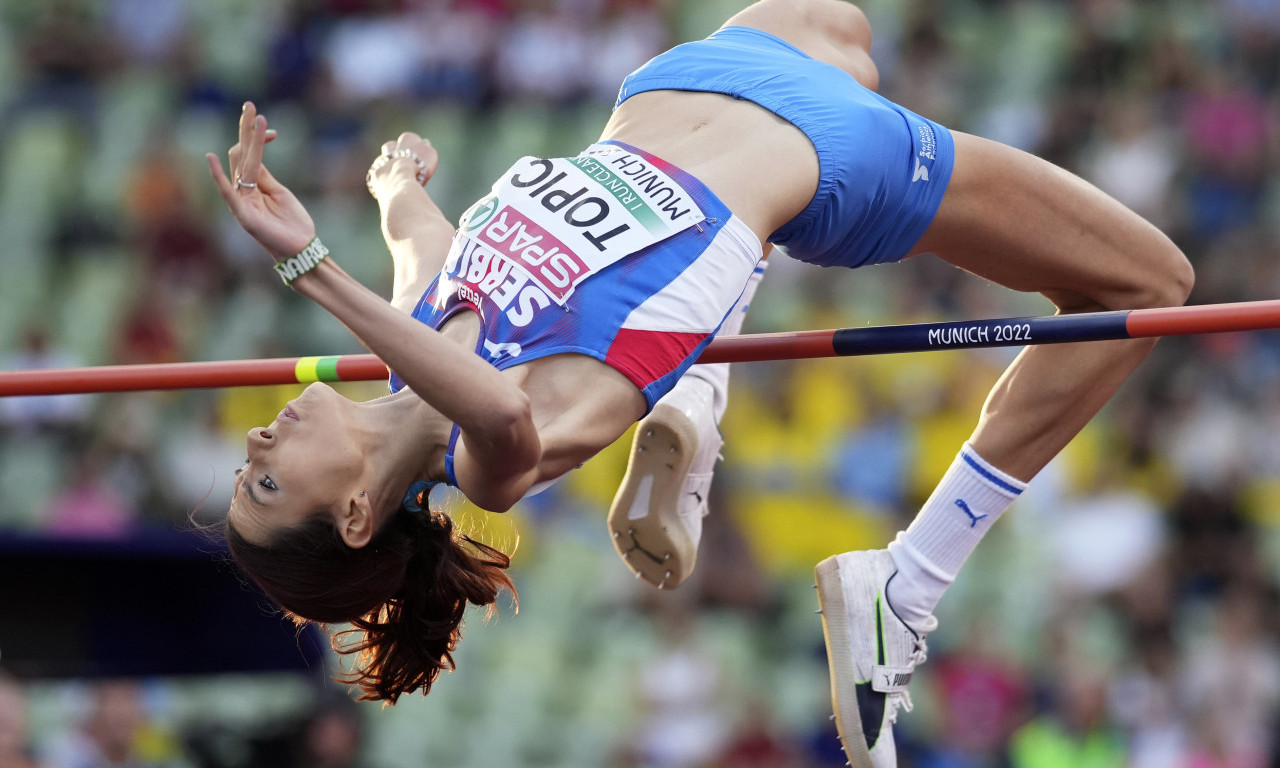 Srpska atletičarka Angelina Topić takmiči se u finalu Evropskog prvenstva u Minhenu u skoku uvis