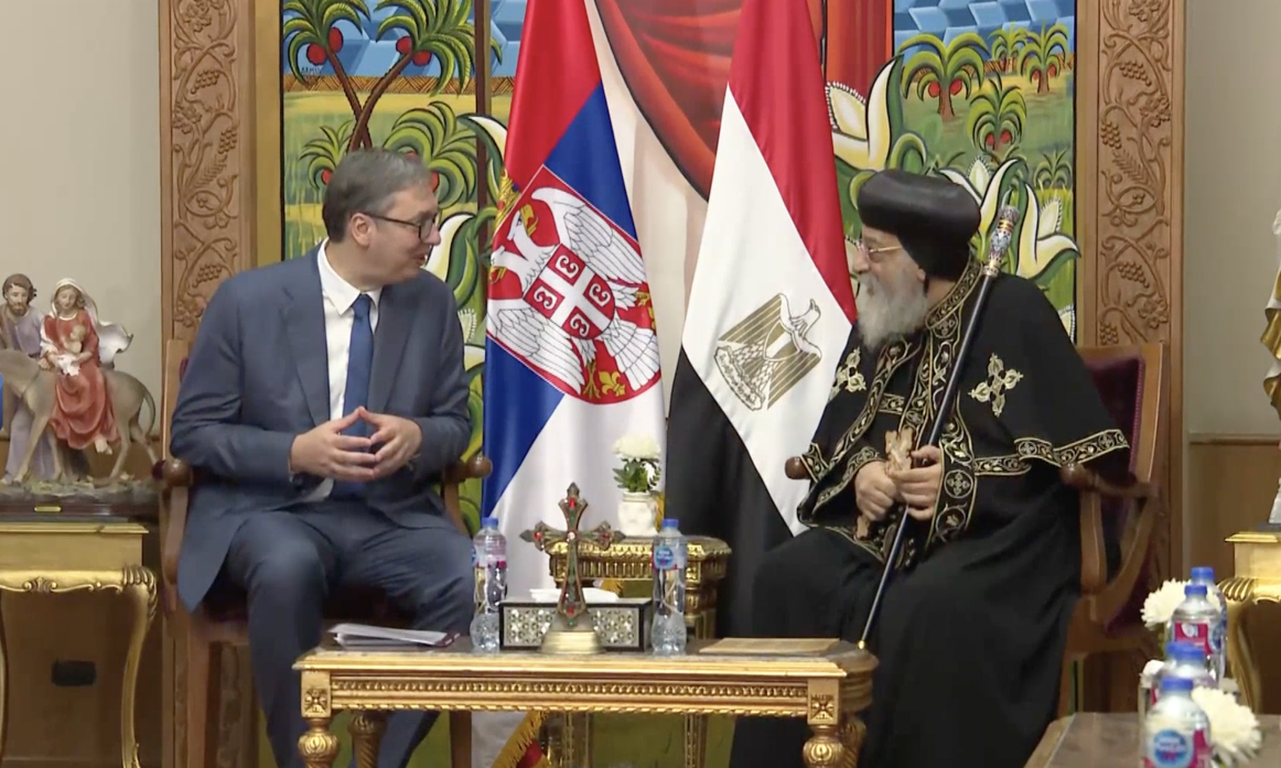 Vučić se sastao sa poglavarom Koptske pravoslavne crkve: Predsednik se ovom prilikom upisao u knjigu POČASNIH GOSTIJU Vučić će potom posetiti Novu administrativnu prestonicu i sastaće se sa predsednikom Vlade Egipta 14.07.2024 Politika