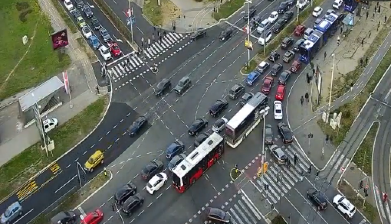 Pančevački most je gotovo neprohodan u oba smera, dok je centar grada blokiran, između ostalog, i zbog obustave saobraćaja u Ulici kneza Miloša, gde je trenutno u toku protest inicijative „Roditelji Beograda“. Zbog toga su i okolne ulice u potpunom zastoju.