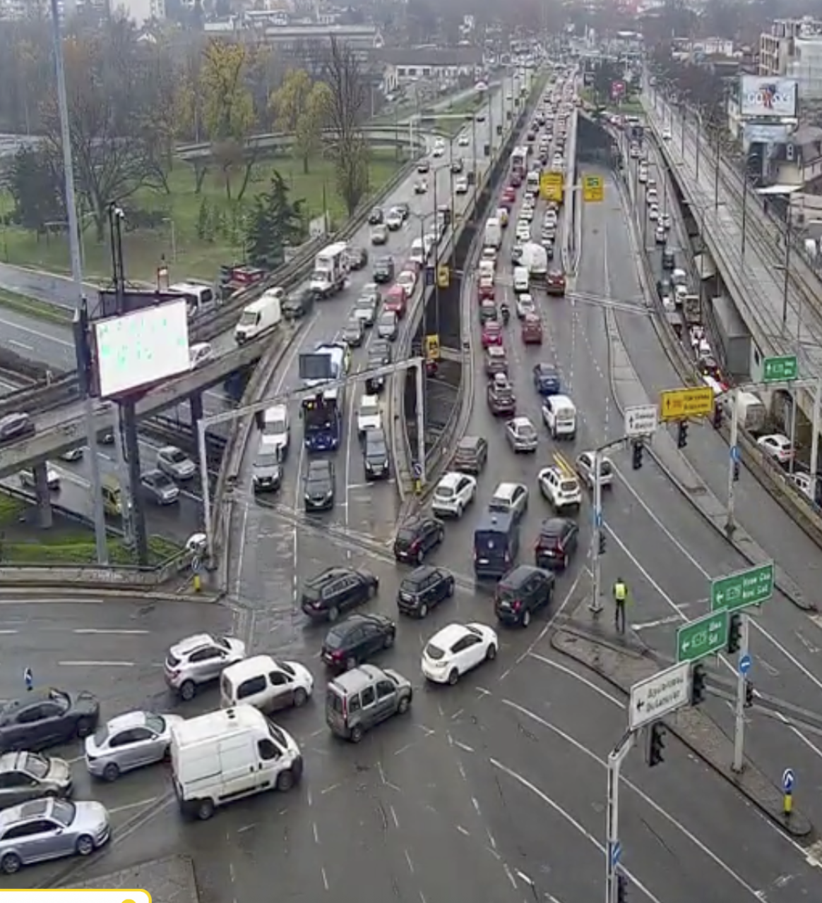 Na Novom Beogradu gužve su najizraženije pre ulaska na Gazelu, kao i u zoni Tešnjinog cveta i pojedinim delovima Bulevara umetnosti. Zemun je uglavnom prohodan, uz veća zadržavanja duž Novog Naselja i Glavne ulice.