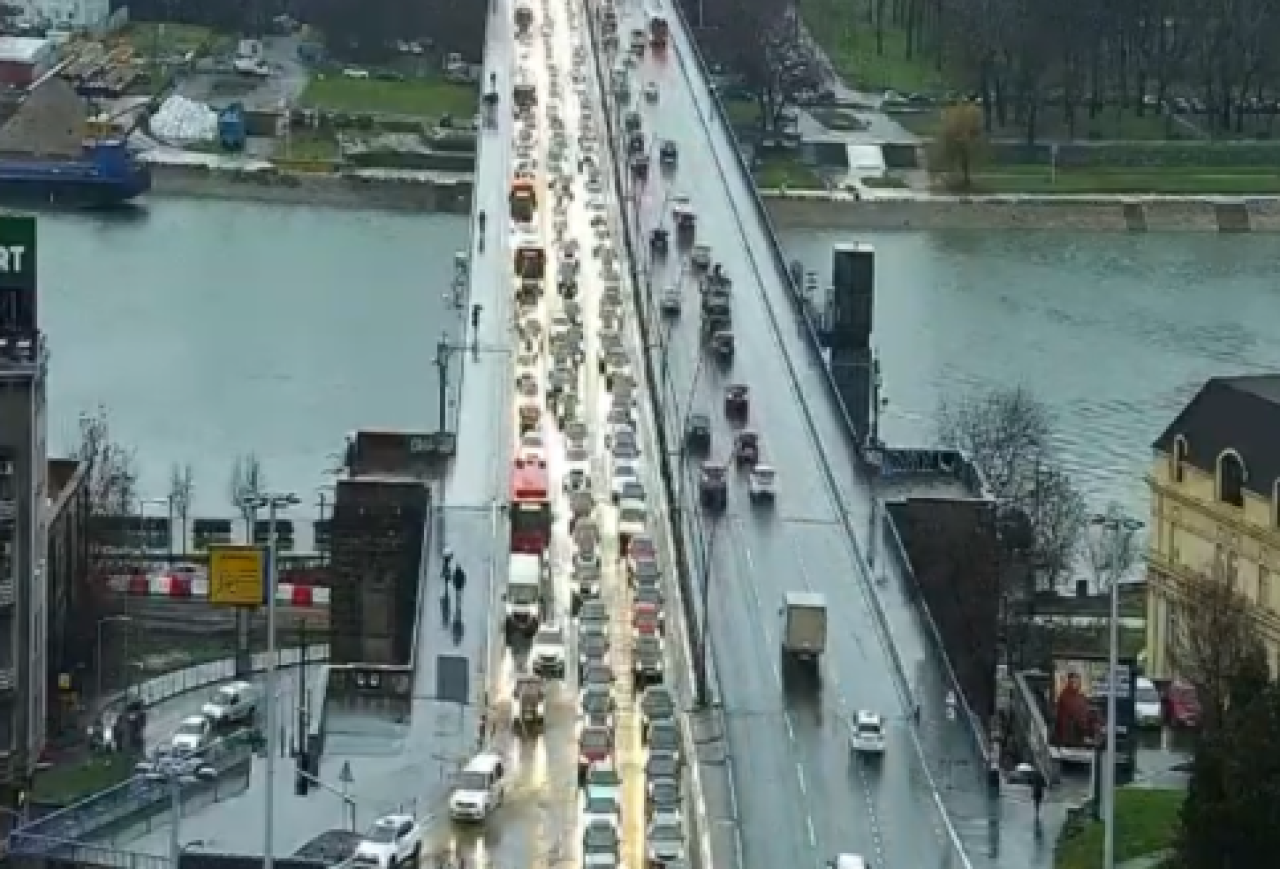 Ništa bolje nije ni na Brankovom mostu, u smeru ka gradu.
