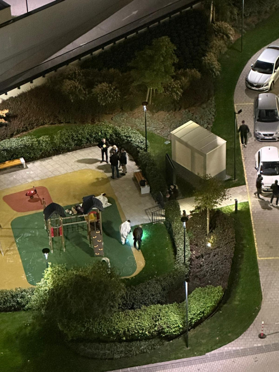 Na snimku s lica mesta vidi se kako jedna osoba leži na dečjem igralištu.