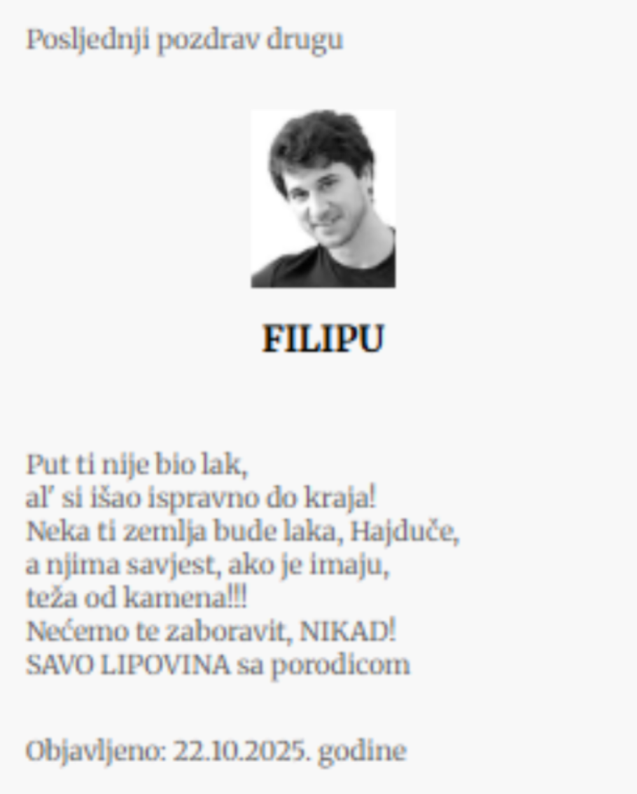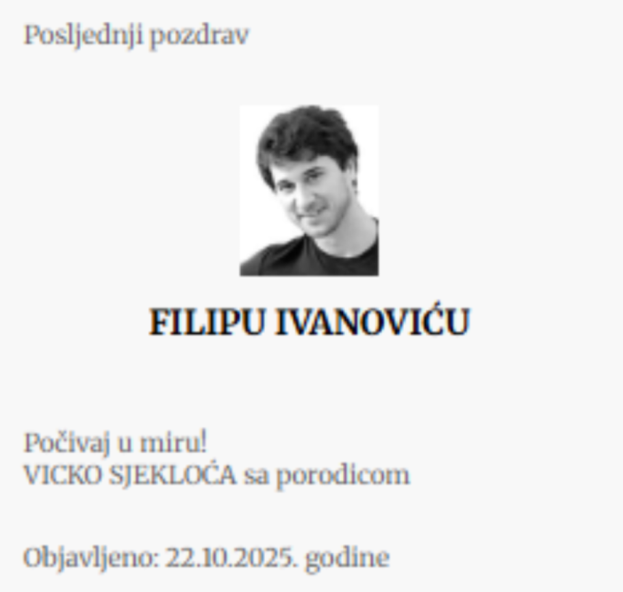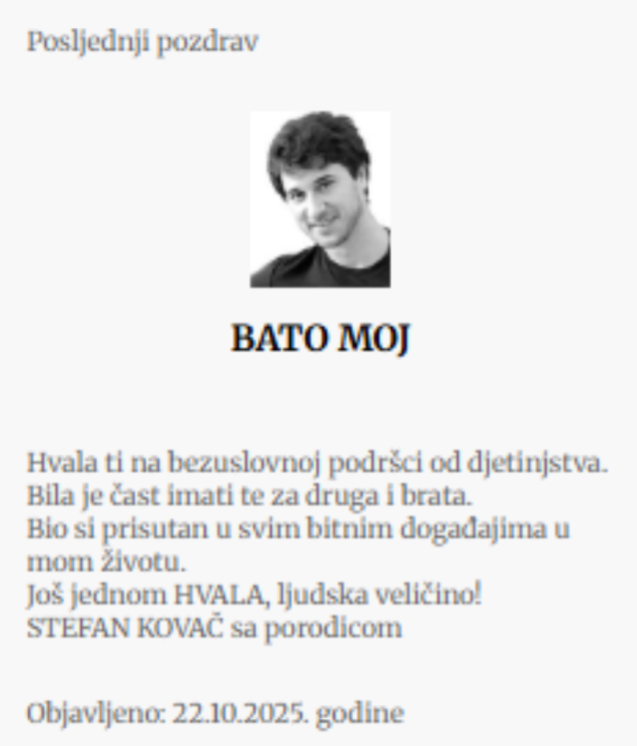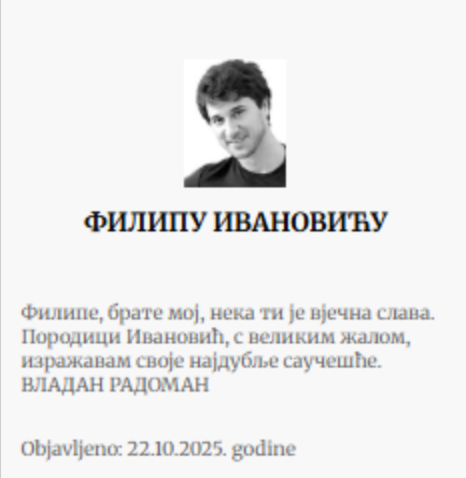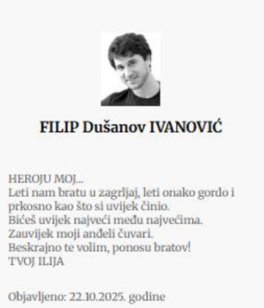 - Brate moj, neka ti je večna slava. Porodici Ivanović izražavam najdublje saučešće.