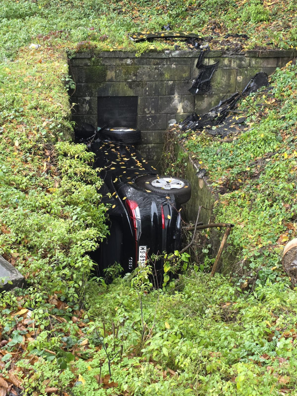 Na fotografijama sa lica mesta, vidi se da se vozilo prevrnuto nalazi u betonskom propustu.