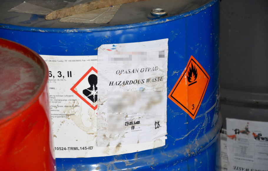 Policijski službenici su, na skladištu preduzeća koje je registrovano za preradu neopasnog otpada, čiji je M.V. direktor, a P.R. zaposleni, pronašli 115 tona opasnog otpada kancerogenosti kategorije 1A, kao i 62 kontaminirana suda ukupne zapremine 12.400 litara sa tragovima opasnih materija.