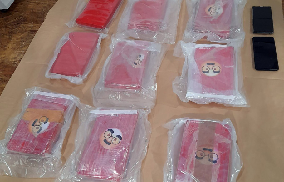 Droga je bila spakovana u pravougaonike obmotane crvenim najlonom, a na njima je bio "specijalni" znak: popularni smajli sa brkovima i naočarima.